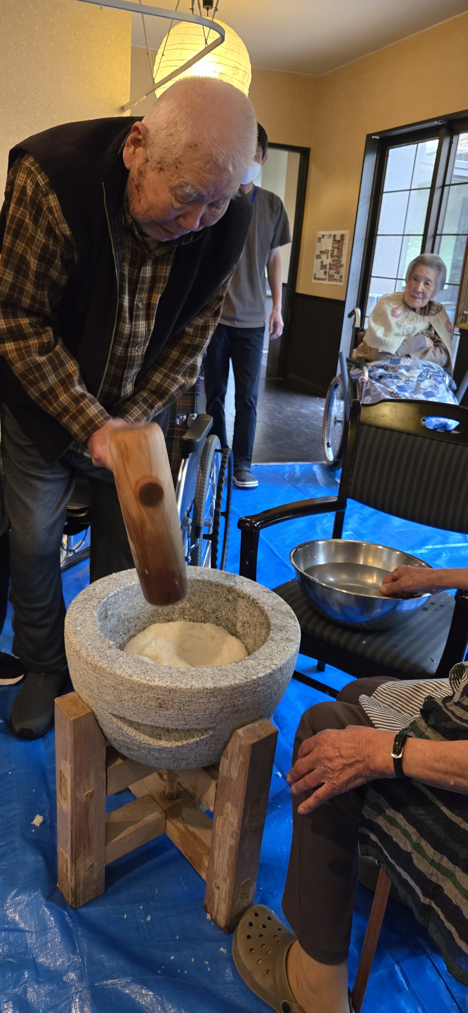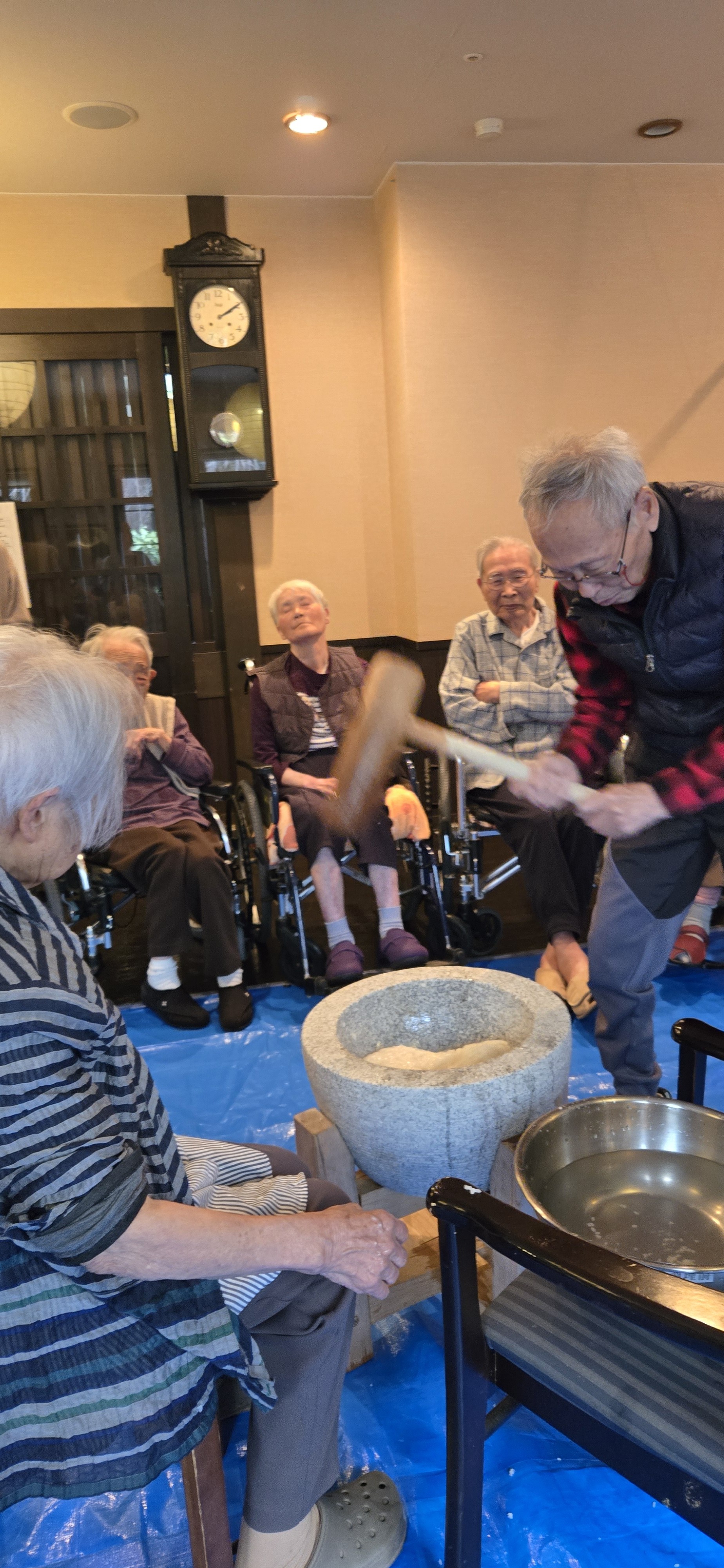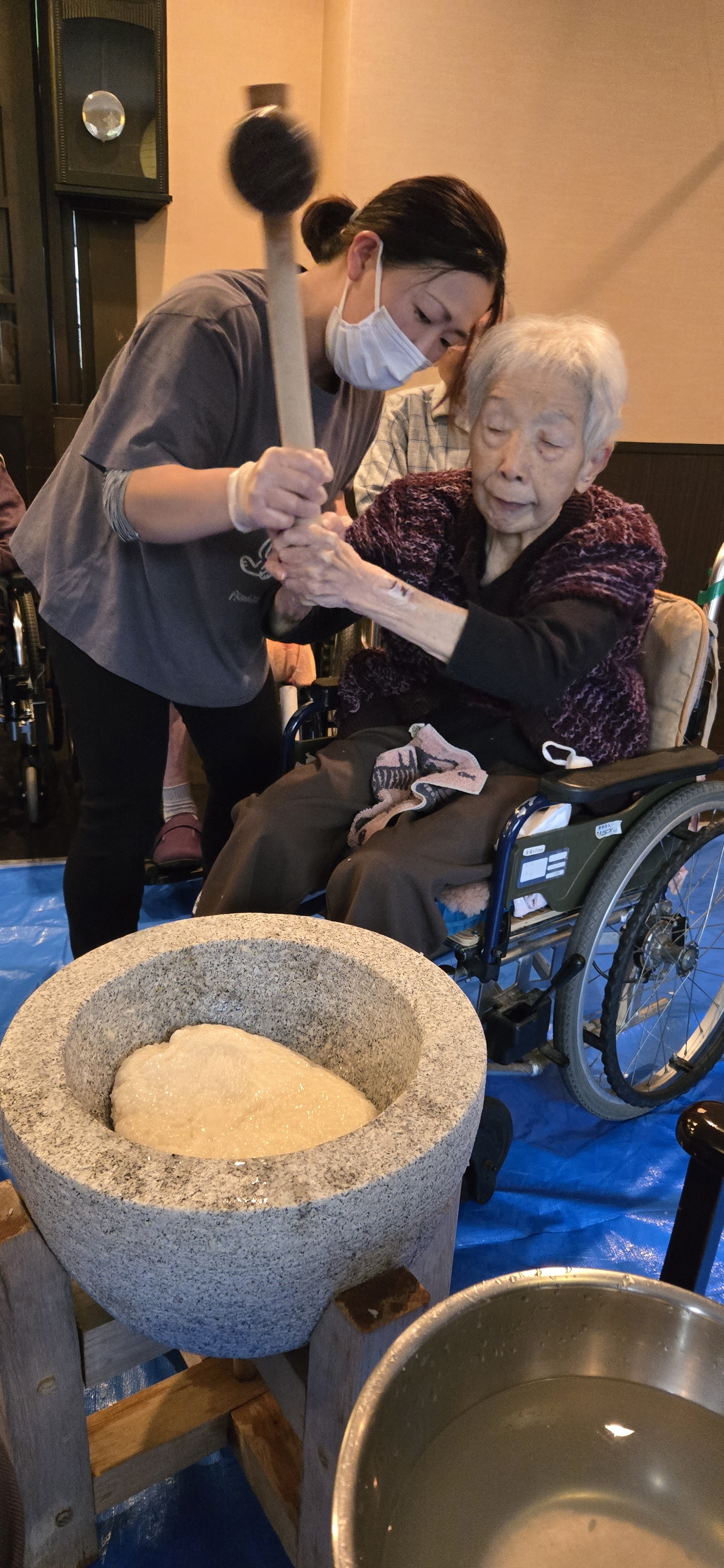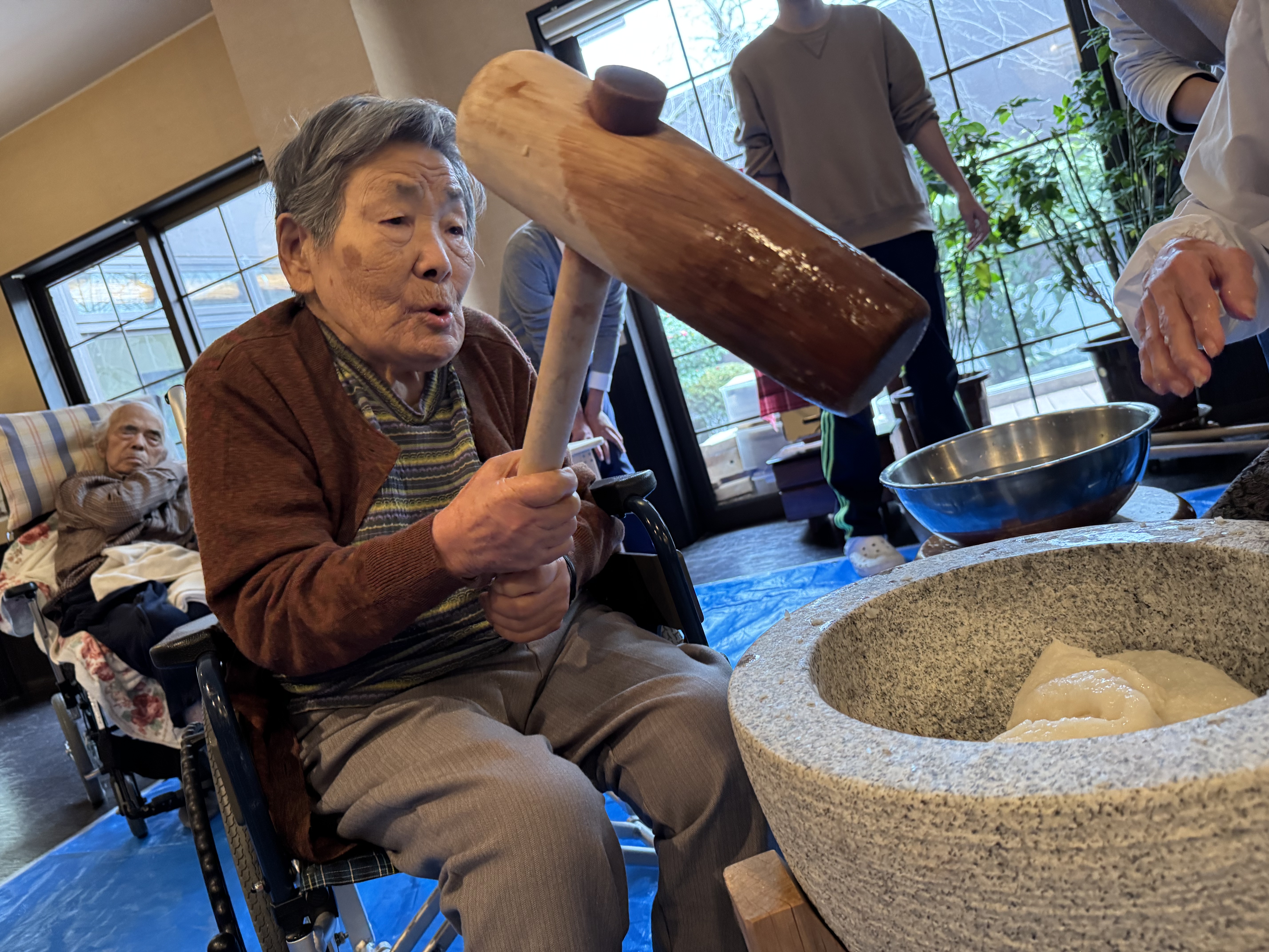 ■大好物のお餅をついて100歳のお誕生日をお祝い