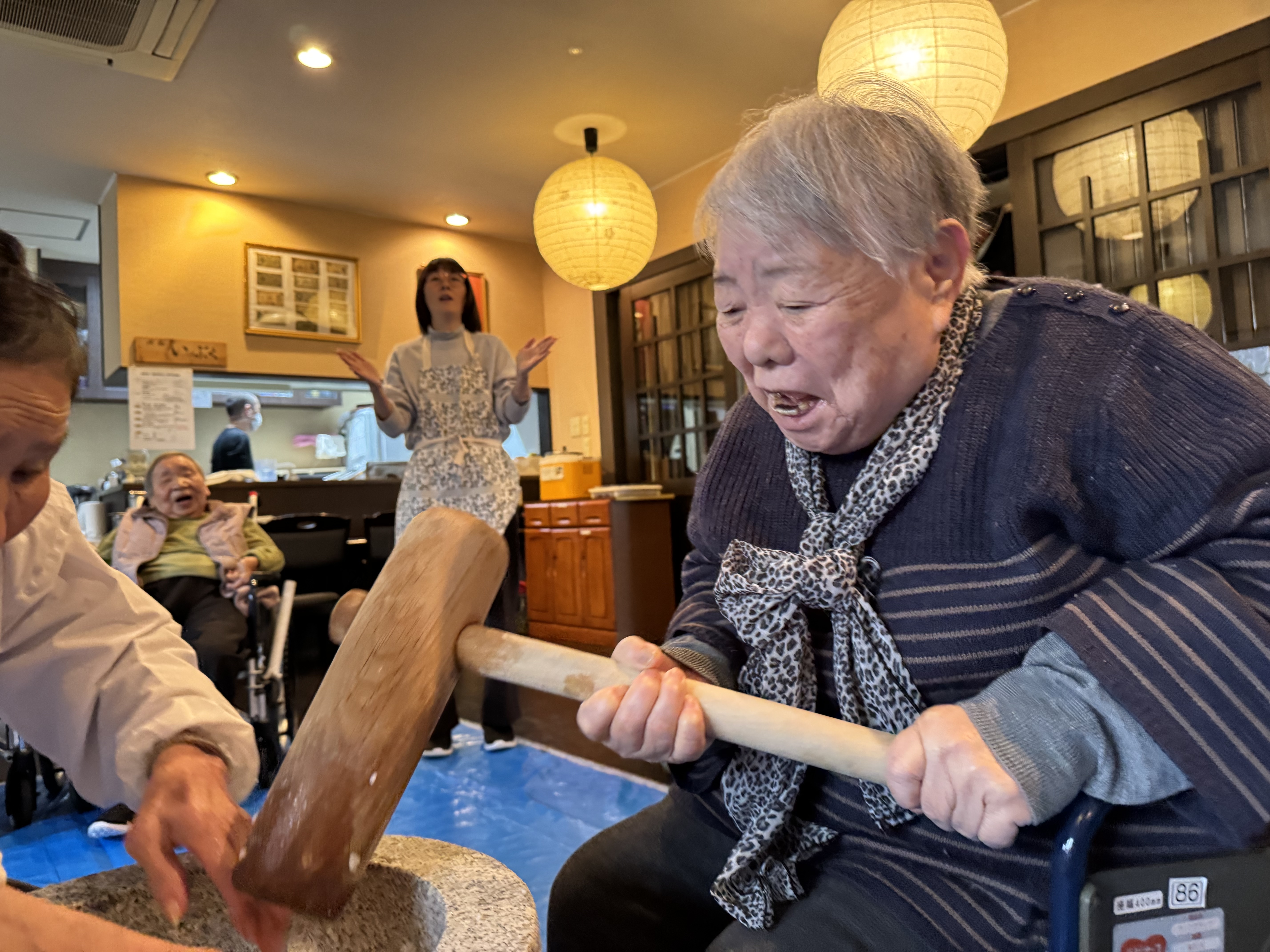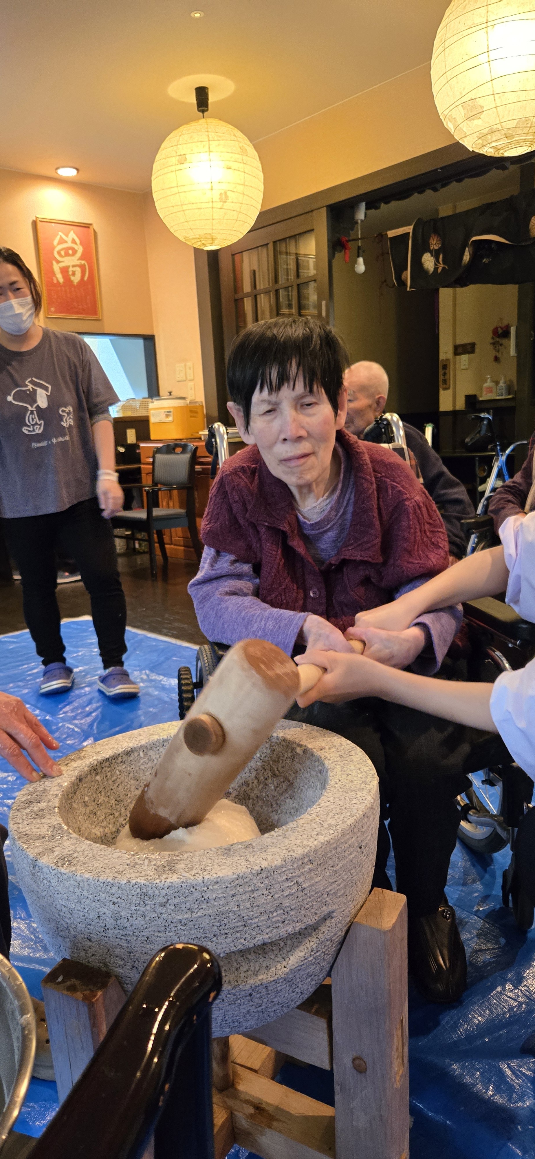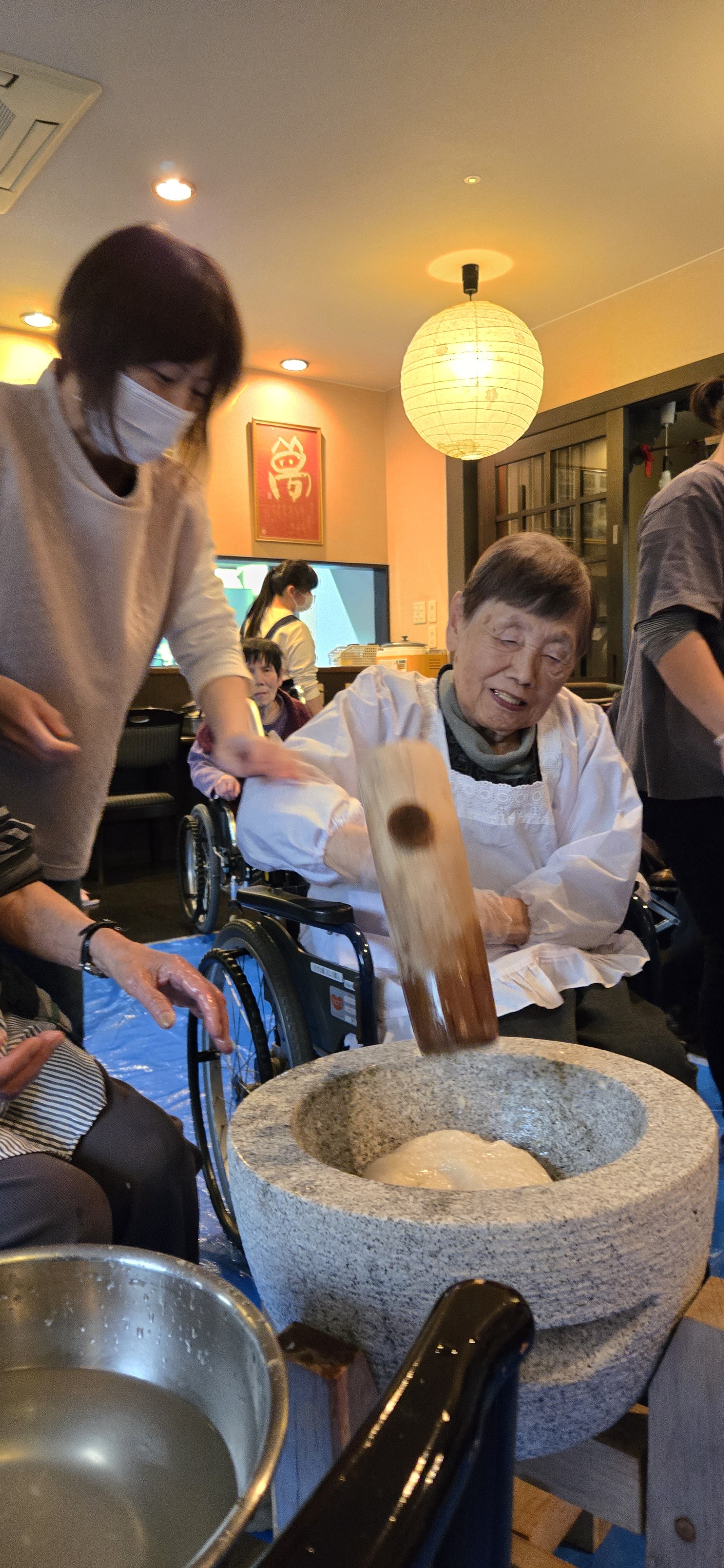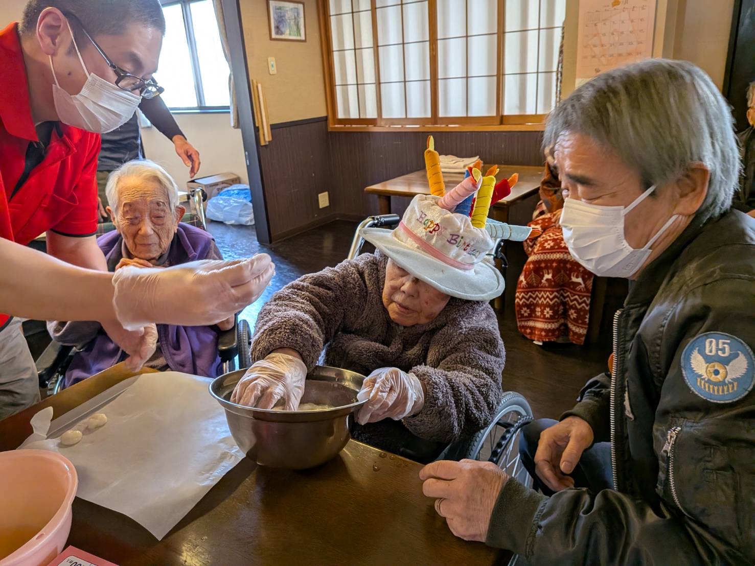 ■大好物のお餅をついて100歳のお誕生日をお祝い
